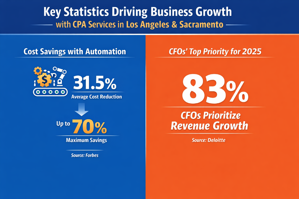 Forbes reports that intelligent automation in financial operations can reduce costs by 31 to 32 percent on average, with certain processes achieving savings of up to 70 percent. CPA services in Los Angeles support modernization efforts while maintaining compliance discipline.